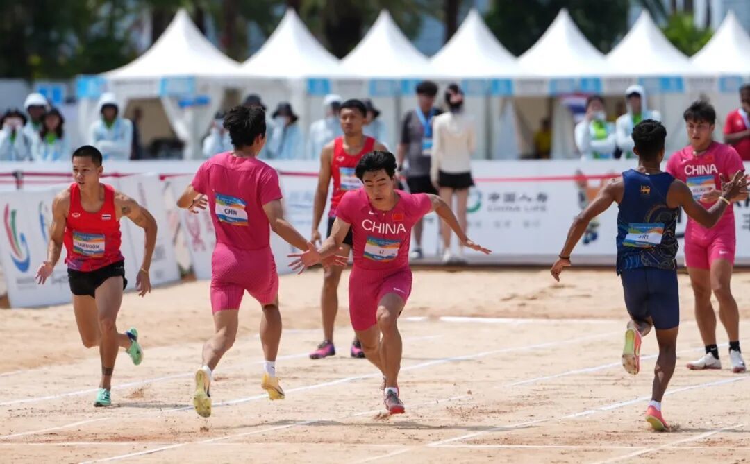 径赛赛场上,接力与短跑项目的比拼紧张激烈,中国选手奋力拼搏。男子4×60米接力赛中,由黄友超、李孟源、王新凯、艾力库提依沙克组成的中国队配合默契,最终以0.62秒的领先优势力克卫冕冠军泰国队,成功站上最高领奖台。“我们的目标就是拼尽全力把金牌拿下。”黄友超赛后表示,这枚金牌离不开四个人的团结协作与默契配合,他用“完美”来形容团队此次的表现。小伙子们一致表示,接下来将继续提升自身水平,争取为国家争得更多荣誉。